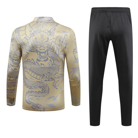 23-24 Real Madrid gold with dragon half zipper training tracksuit